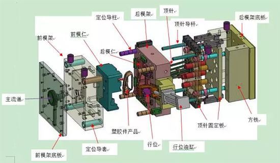 最后是頂出機(jī)構(gòu)。模具注塑好后的塑料件基本上留在型芯上,這時(shí)候就需要頂出機(jī)構(gòu)來(lái)頂出塑料件。頂出機(jī)構(gòu)通常是頂針,頂板或者頂塊之類的。